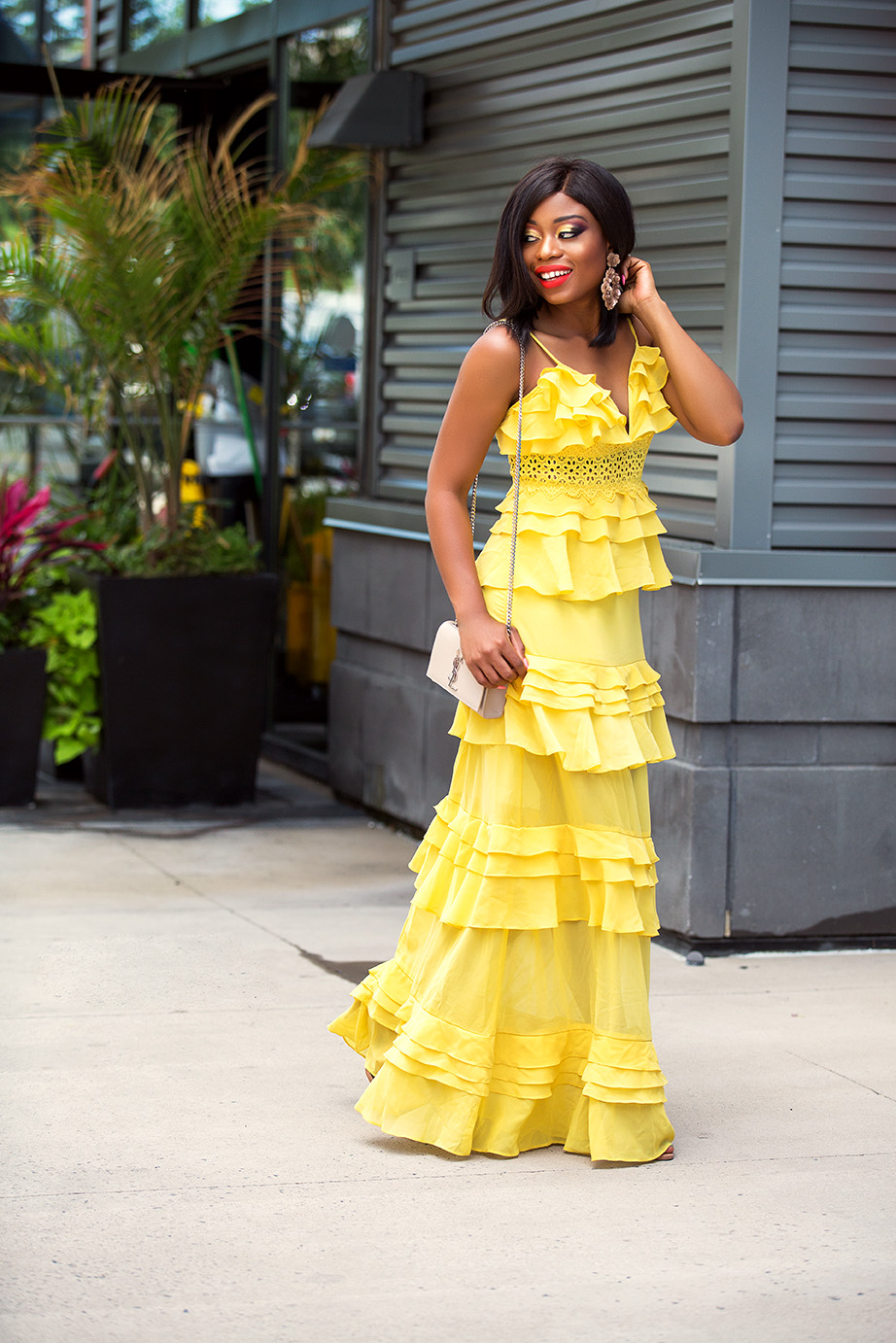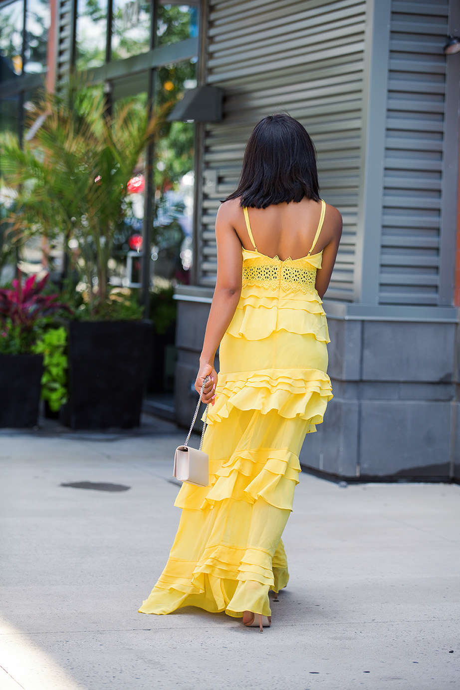 Vestido maxi de tiros y falda en capas