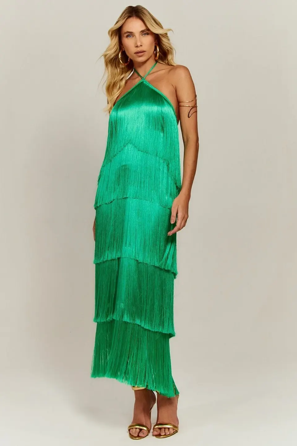 Vestido de cocktail halter de flecos