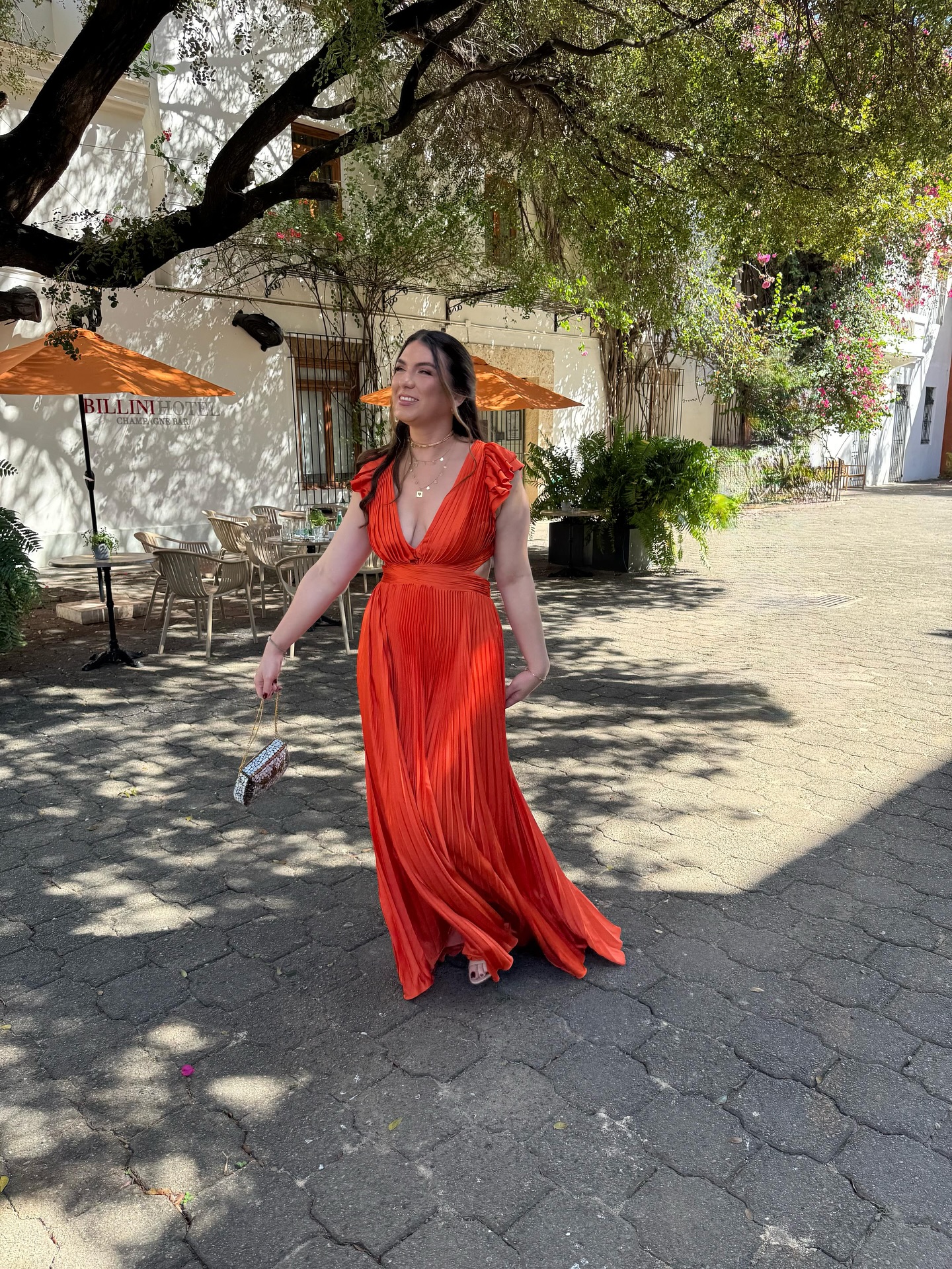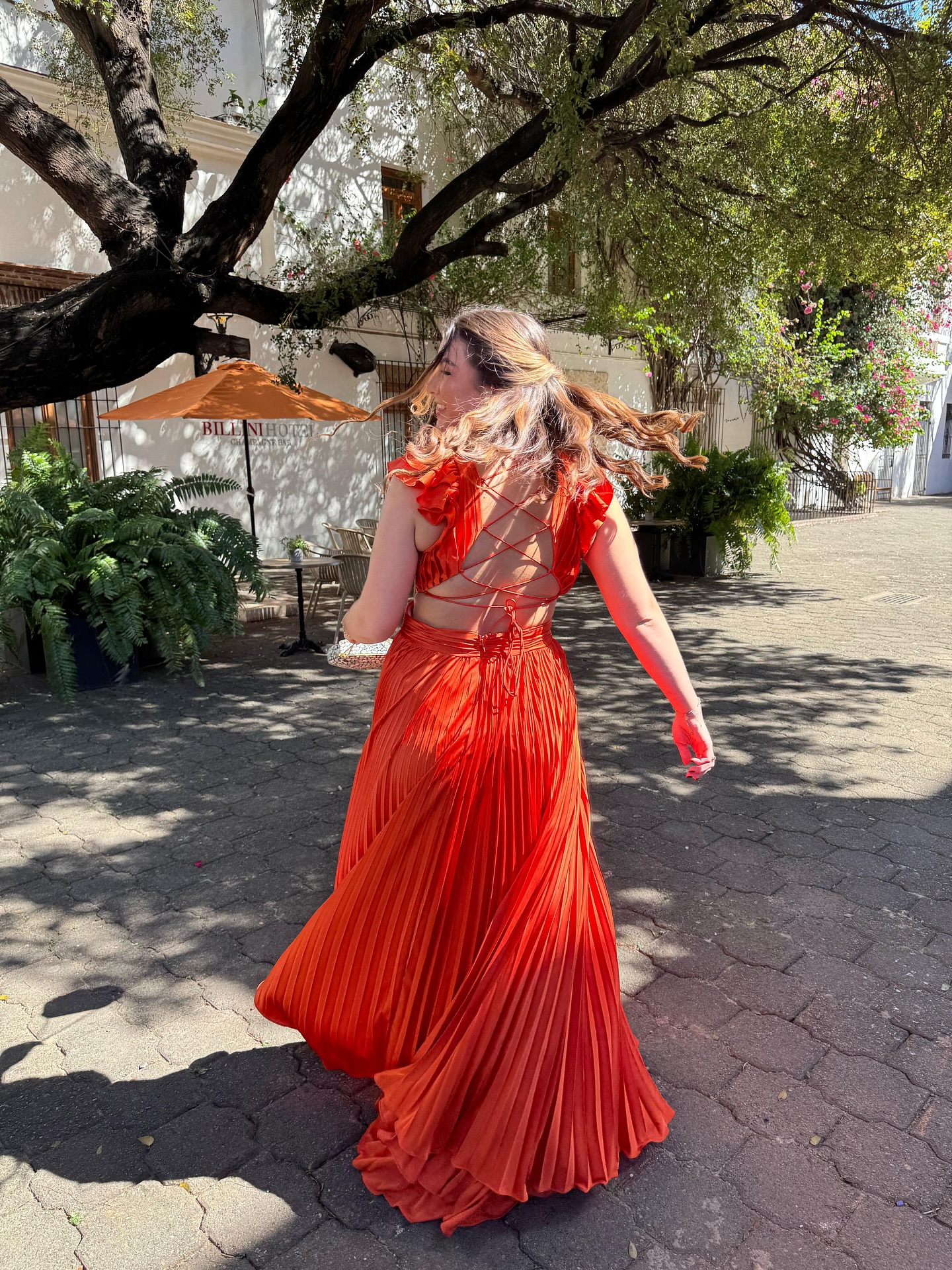 Vestido plisado en corte A y espalda descubierta