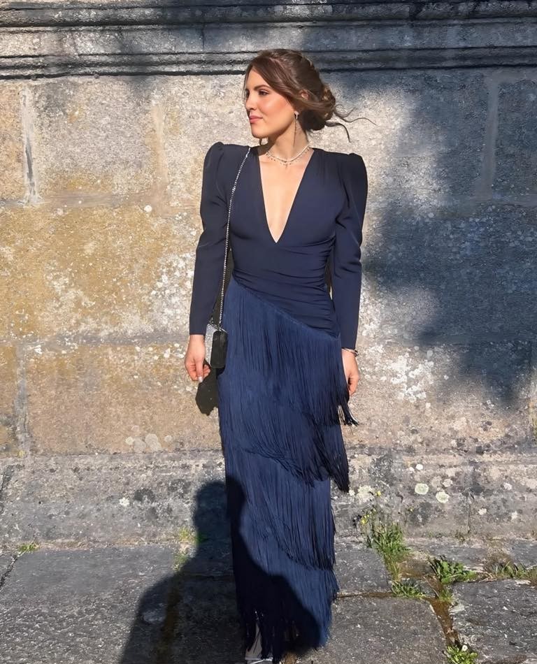 Vestido mangas largas de flecos