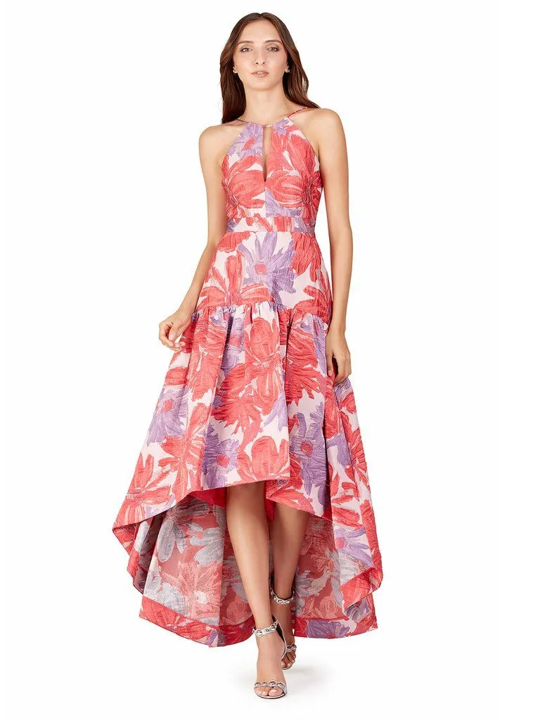 Vestido hi-low estampado de cuello halter